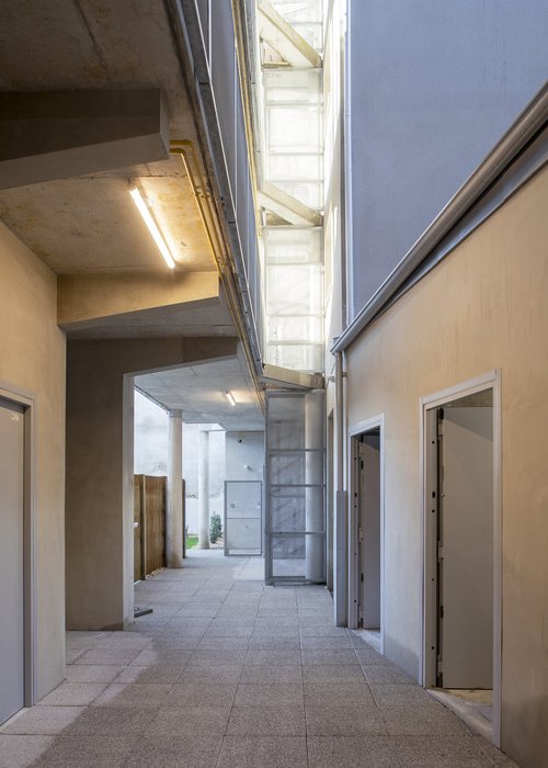 Le quartier est composé par différents ensembles de maisons individuelles en bande de 1 à 2 étages et par quelques immeubles de logement intermédiaire notamment face au canal. Notre réponse s’attache à mettre en avant la capacité du projet à participer à l’ensemble plutôt qu’à se démarquer du quartier.